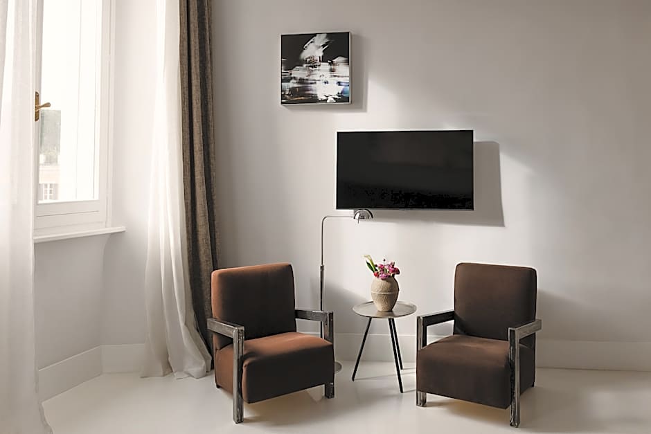 Overlooking the Spanish Steps, this spacious, air-conditioned suite features a lounge area, a 32" LED TV with Sky channels, and a Nespresso coffee machine. The private bathroom comes with a large showerhead and L'Occitane toiletries. Free high-speed Wi-Fi is included.